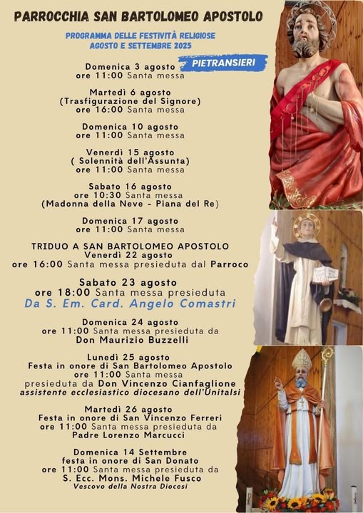 NotiziePrimo PianoPIETRANSIERI, IL PROGRAMMA DELLE FESTIVITÀ DELLA PARROCCHIA S. BARTOLOMEO APOSTOLO Post Views: 31